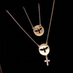 Escapulário Ouro Espirito Santo e FÉ com Cruz de Topázios Branco
